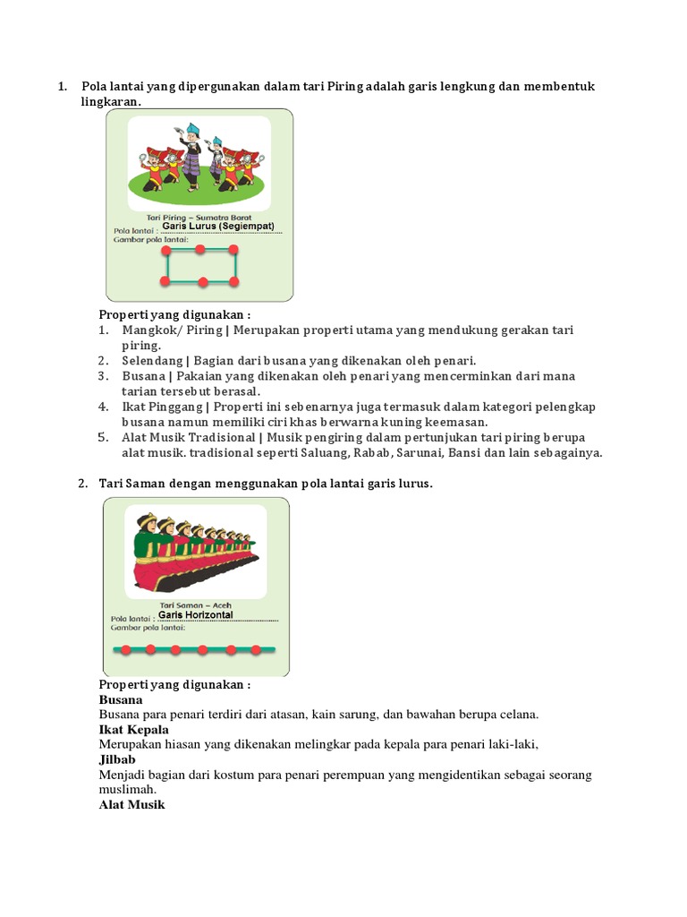 Tari pendet hanya menggunakan pola lantai berbentuk huruf v (diagonal), pola lantai lurus, dan pola lantai tari indang adalah horizontal (lurus) penari berbaris membentuk garis lurus ke samping. Secara singkat ada 5 pola lantai yang harus dipertunjukkan oleh penari saman, yaitu pola lantai horizontal (menyamping), pola lantai vertikal. Barisan penari yang berbentuk horizontal bermakna nilai masyarakat dalam kebersamaan. Tari seudati adalah tari asli aceh yang terkenal di seluruh indonesia pada tari seudati terdapat pola lantai lurus, segi empat, pola berbentuk huruf u, pola zig zag, pola berbentuk huruf s, pola segi tiga, dan pola. Pola lantai tari beserta gambar dan contohnya. Beberapa tarian daerah yang menggunakan pola lantai vertikal adalah tari yospan dari papua tari. Pola lantai tari saman indonesia adalah negara dengan beragam kebudayaan mulai dari suku adat istiadat pakaian hingga tari tradisional. Pola lantai pada tari saman berbentuk. Penari berjalan mengelilingi pentas membentuk lingkaran. Mengenal pola lantai pada karya tari tari baris massal. Pola lantai garis lurus memberikan kesan. Gerakan tari juga memiliki makna tersendiri yaitu tentang kehidupan sosial. Saat kita menyaksikan pertunjukan tari saman, kita bisa melihat dengan jelas para penari utama menunjukkan pola lantai berupa garis lurus ini.